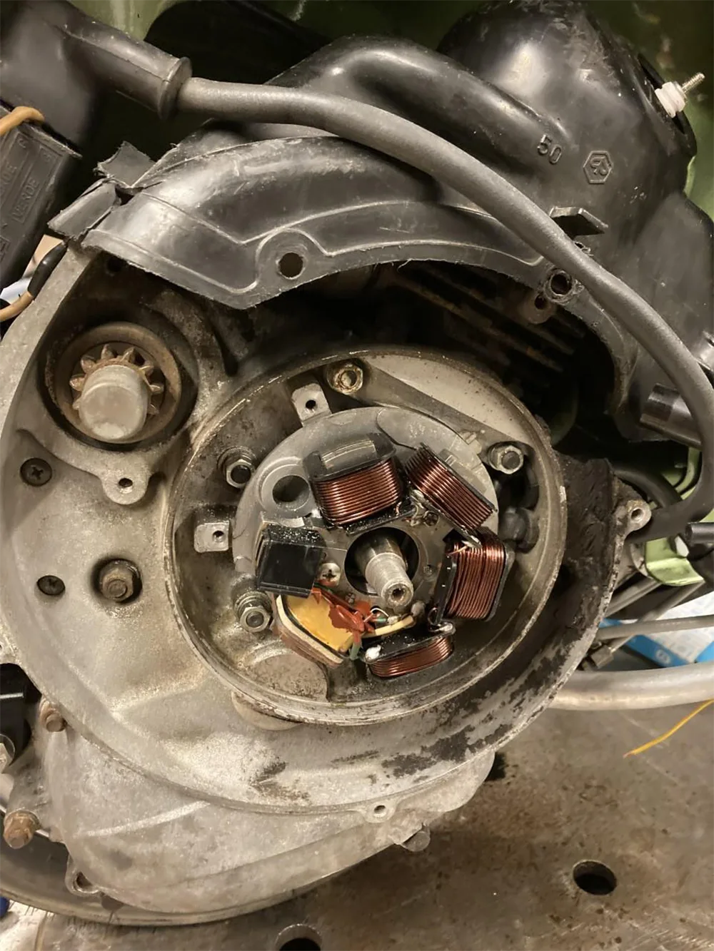Tá feidhmiú CRF150F Gluaisrothar Magneto Coil bunaithe ar dhlí Faraday maidir le hionduchtú leictreamaighnéadach. Nuair a ritheann an t-inneall, tiomáineann an crankshaft maighnéad an rotor chun rothlú ar ardluais, rud a chruthaíonn réimse maighnéadach malartach dinimiciúil. Gearrann an grúpa corna stator na línte réimse maighnéadacha chun sruth ailtéarnach a ghiniúint, a dháiltear ansin ar na córais adhainte, luchtaithe agus uainiúcháin chun obair chomhordaithe comhpháirteanna leictreacha an ghluaisrothar a bhaint amach.