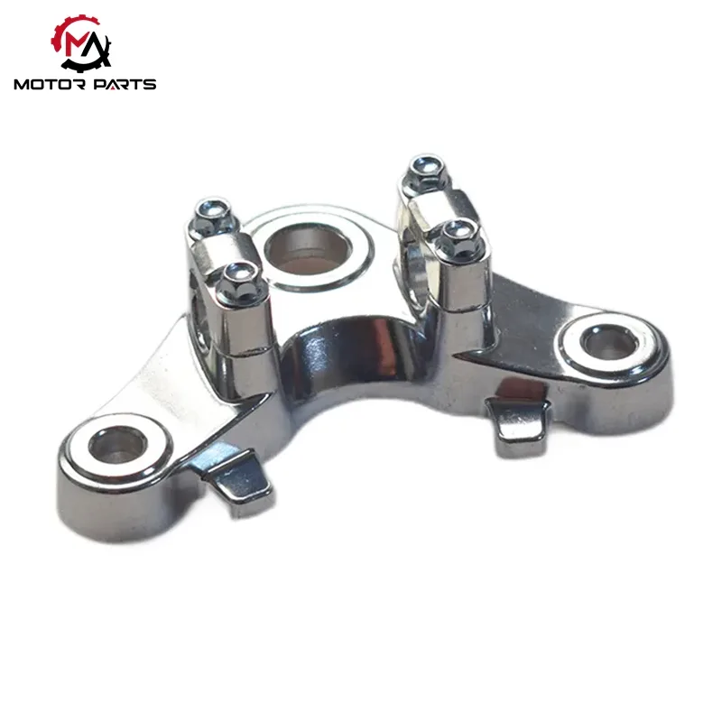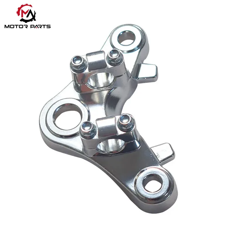 Déanann Max Trading speisialtóireacht i T&F agus soláthar comhpháirteanna struchtúracha gluaisrothair. Tá ár bPláta Nasctha Uachtarach Gluaisrothar Honda CG125, croí-chomhpháirt ualachiompartha agus stiúrtha a nascann an forc CG125, maolaitheoirí turrainge agus fráma, tar éis leas iomlán a bhaint as innealtóireachta thar cheithre ghné: meicnic struchtúrach, próiseáil ábhair, comhoiriúnacht suiteála, agus marthanacht fadtéarmach. Tá cruth búmarang de chaighdeán tionscail agus leagan amach poll triantánach trí phointe sa phláta ceangail uachtair seo, in éineacht le dearadh tiús criosaithe, easnacha treisithe comhtháite, agus cuas laghdaithe meáchain stua-chruthach. Baineann sé ard-neart agus tógáil éadrom araon amach. Cinntíonn cóireálacha iomadúla frith-chreimeadh, lena n-áirítear leictreafóiréis, sciath púdar, agus galbhánú, a inoiriúnaitheacht fhadtéarmach do thimpeallachtaí báistí, láibeacha agus cnapánacha.