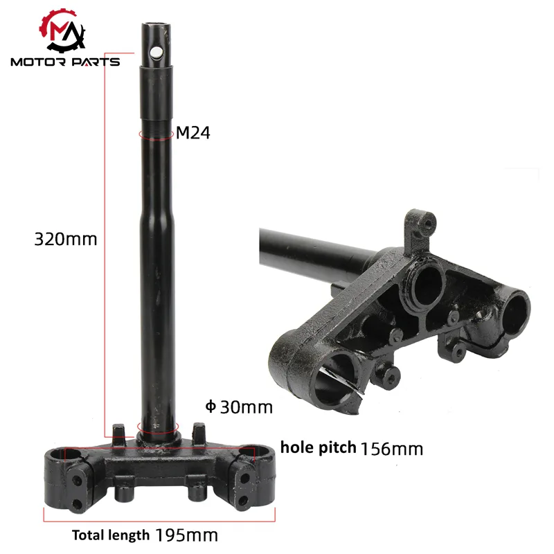 Is é Colún Stiúrtha Gluaisrothar JOG125 ná cóimeáil colún stiúrtha aon-phíosa atá deartha go sonrach do ghluaisrothair scútar ag Max Trading, monaróir agus soláthraí na Síne. Tá struchtúr táthaithe, comhtháite aige agus próiseas gaibhnithe beachtas, ag baint úsáide as feadánra cruach gan uaim 20# agus cóireáil teasa chaighdeánaithe. Déileáiltear leis an dromchla le primer fosfáitithe agus péint dhubh le haghaidh friotaíocht meirge agus marthanacht. Monaraithe go docht de réir chaighdeáin an mhonaróra trealaimh bhunaidh (OEM), tá cosaint imthacaí séalaithe go hiomlán aige, cruinneas dromchla frithchuimilte scátháin, agus friotaíocht tuirse ard-neart. Ceadaíonn toisí suiteála caighdeánaithe meaitseáil dhíreach le forcanna tosaigh agus crainn láimhe, rud a fhágann go bhfuil sé oiriúnach do chomaitéireacht uirbeach ard-minicíochta.
