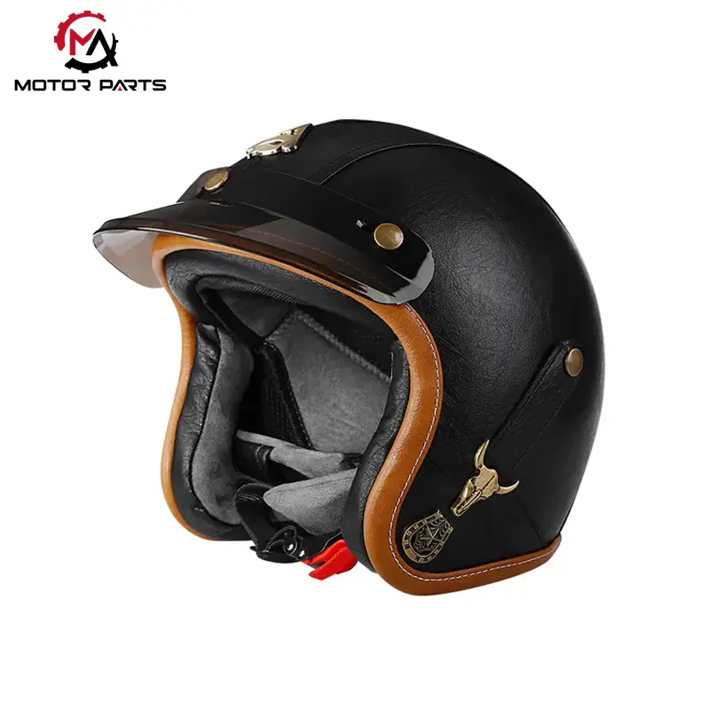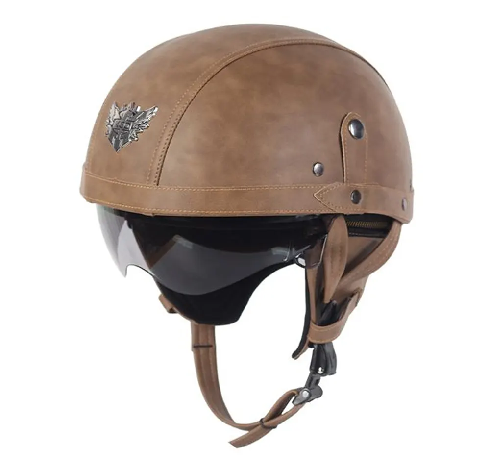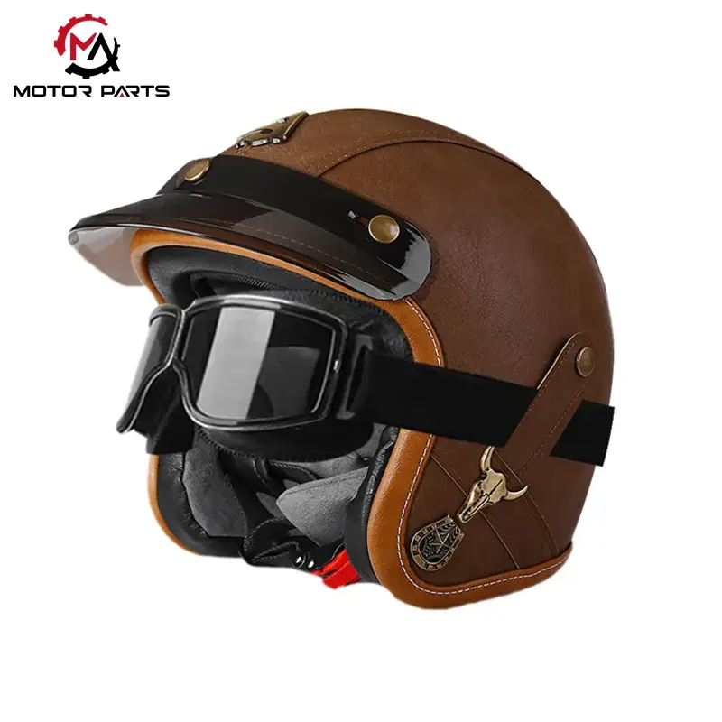 Is táirge leath-clogaid clasaiceach ó Max Trading sa tSín é an Leathar Clogaid Leath-Aghaidh Gluaisrothar saincheaptha le Goggles, atá deartha le haghaidh marcaíocht uirbeach agus díograiseoirí gluaisrothar seanré.