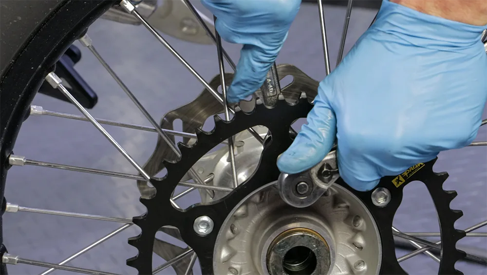 Bain úsáid as eochair labhartha le coinneáil ar thaobh an chnó labhartha. Cas an cnó ar an mbealach eile timpeall clog chun é a scaoileadh. Is é an aidhm atá ann ná teannas an nua nó an labhartha seasta a dhéanamh mar an gcéanna leis na spokes eile ar an taobh céanna den roth.