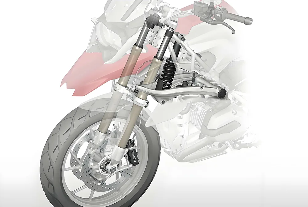 Is é seo cnámharlach agus fionraí do ghluaisrothair. Tosaíonn sé leis an bhfráma agus leis an bhfiabhras. Láimhseálann an forc tosaigh agus an córas fionraí (lena n -áirítear comhpháirteanna ionsúire turraing) cnapáin. Tá do nasc leis an mbóthar tríd an roth, an mol, an imeall roth, agus an bonn. Na gabhálais fheidhmiúla agus cosanta, m.sh. Glas frith-ghoid, cosaint tuairteora/tuairteála, scáthán cúlghabhálach, bosca stórála, fráma garda (gardaí innill/barraí tuairteála), kickstand, agus an gaothscátha, fiú gabhálais mhaisiúla a dhíríonn ar an bhfonnadh.